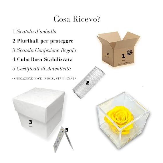 PREMIUM-ROSE-Cubo-Rosa-Stabilizzata-Gialla-5-cm-con-Marmo-di-Carrara-Rosa-Eterna-Stabilizzata-Made-in-Italy-Idea-per-Amici-Colleghi-e-Bomboniere-Giallo-A-1053