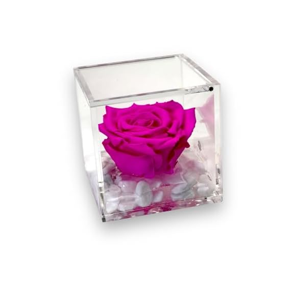 Passionefioriit-Premium-Rose-Cubo-Rosa-Stabilizzata-10cm-Vera-in-Cubo-piu-Spesso-Con-Marmo-di-Carrara-Cubo-Rosa-stabilizzata-Rosa-eterna-Idea-Regalo-per-lei-Natale-Fucsia-10cm